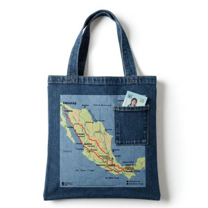 El proyecto se inspira en la funcionalidad de las bolsas del mercado de uso cotidiano para diseñar “Bolsas-Mapa”, objetos portátiles que integran mapas de rutas seguras, información esencial para el viaje y fragmentos de los testimonios de quienes ya han recorrido estos caminos. Estas bolsas, elaboradas a partir de mezclilla industrial reciclada, se convierten en herramientas de resistencia y solidaridad, ofreciendo una alternativa a las narrativas oficiales y visibilizando las experiencias de los migrantes, a menudo reducidas a cifras o estereotipos.