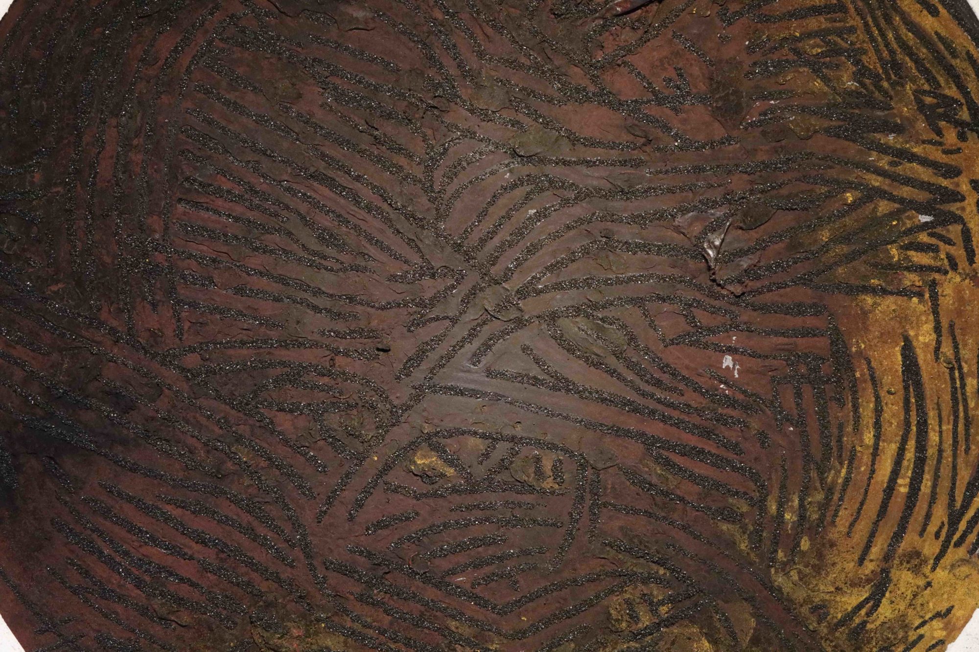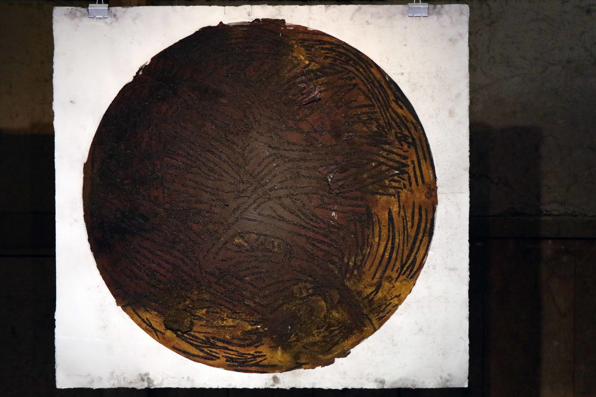 The dark images​ ​of​ Carlos Santos ​contain black crushed marble, synthetic fibers, animal charcoals, vegetable pigments, concrete derivatives, polyurethans, ashes and waterproof materials for the construction of buildings and houses. His work is characterized by texture, traces of burns and cuts, a sense of tactility, and an emphasis on the physical, earthly and material qualities of the elements that he employs. The artist address aspects of life and death, metamorphosis, nature and alchemy. He also translates architectural and socio-political discourses from his context into plastic language. In other words, he extracts references of places, structures and spaces, and transforms them into raw matter but also into art.