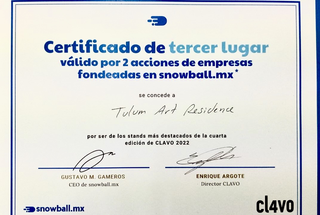 La “feria Clavo” se llevó a cabo en la ciudad de México del 4-6 noviembre del 2022, es considerada la Feria de Arte contemporáneo emergente más destacada de México, en esta 4ta. edición el artista Carlos Santos fue invitado a participar con su proyecto de Residencias Artistas Internacionales que fundó en 2022 en la Riviera Maya llamado: “Tulum Art Residence”, en la zona de Tulum, donde invita a otros artistas, curadores, etc., a que desarrollen un proyecto artístico durante su estancia y lo exponga al finalizar en algún cenote, rio subterráneo, la selva, o en los nuevos espacios desbastados de la selva por las inmobiliarias, nuevos basureros de sargazo, el mar, etc., o en algún otro espacio intersticial.
