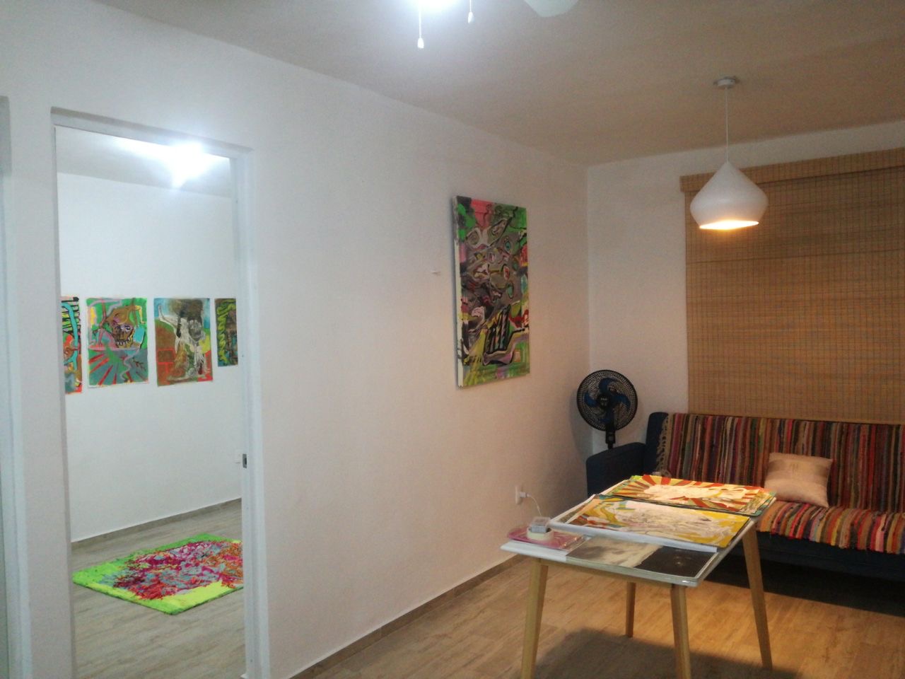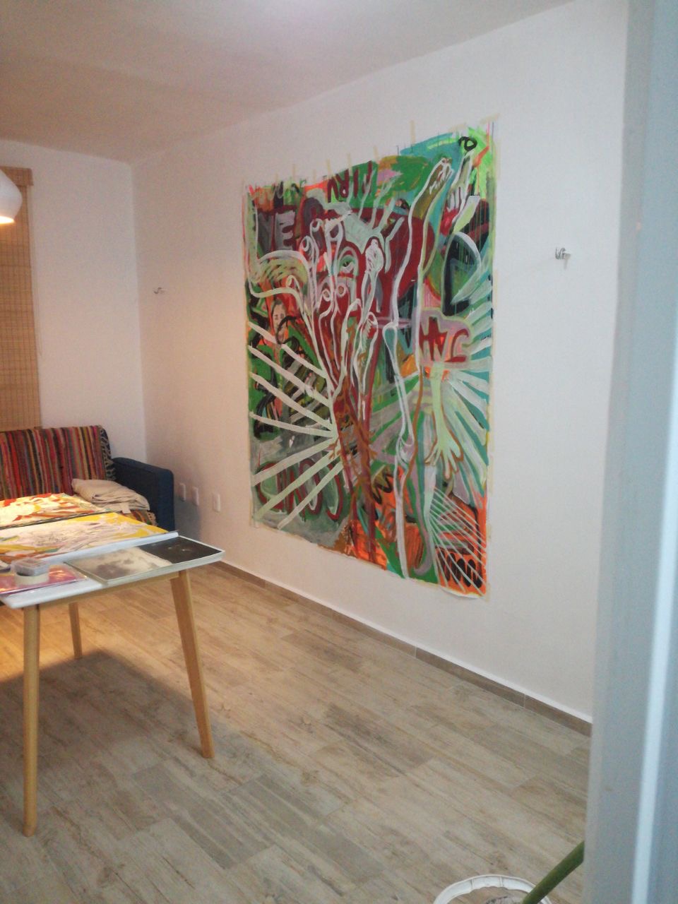 Este proyecto fue acreedor al premio de la feria a los stands más destacados por su propuesta y solides conceptual, así como a la propia instalación, donde Carlos Santos tejió con un lazo todos los textiles bordados, junto con una fotografía de gran formato impresa en tela, que hace referencia a su contexto social más inmediato, su colonia Desarrollo Urbano y pueblo de santa fe en CDMX, vista desde una montaña donde se percibe el aglomeramiento de las casas donde parece que no cabe una más, articulando todo como tejido social, corporal y al mismo tiempo habitable al tejer el espacio expositivo entre sí por una telaraña haciendo referencia a los lazos y conexiones familiares y que evoca directamente a la obra Una milla de hilo, realizada por Marcel Duchamp en Nueva York, en 1942, para la exposición First Papers of Surrealism, La obra consistía en una instalación de hilos que envolvían y atravesaban el espacio como telarañas, impidiendo de hecho el paso del público y que este pudiera contemplar el resto de las piezas expuestas.