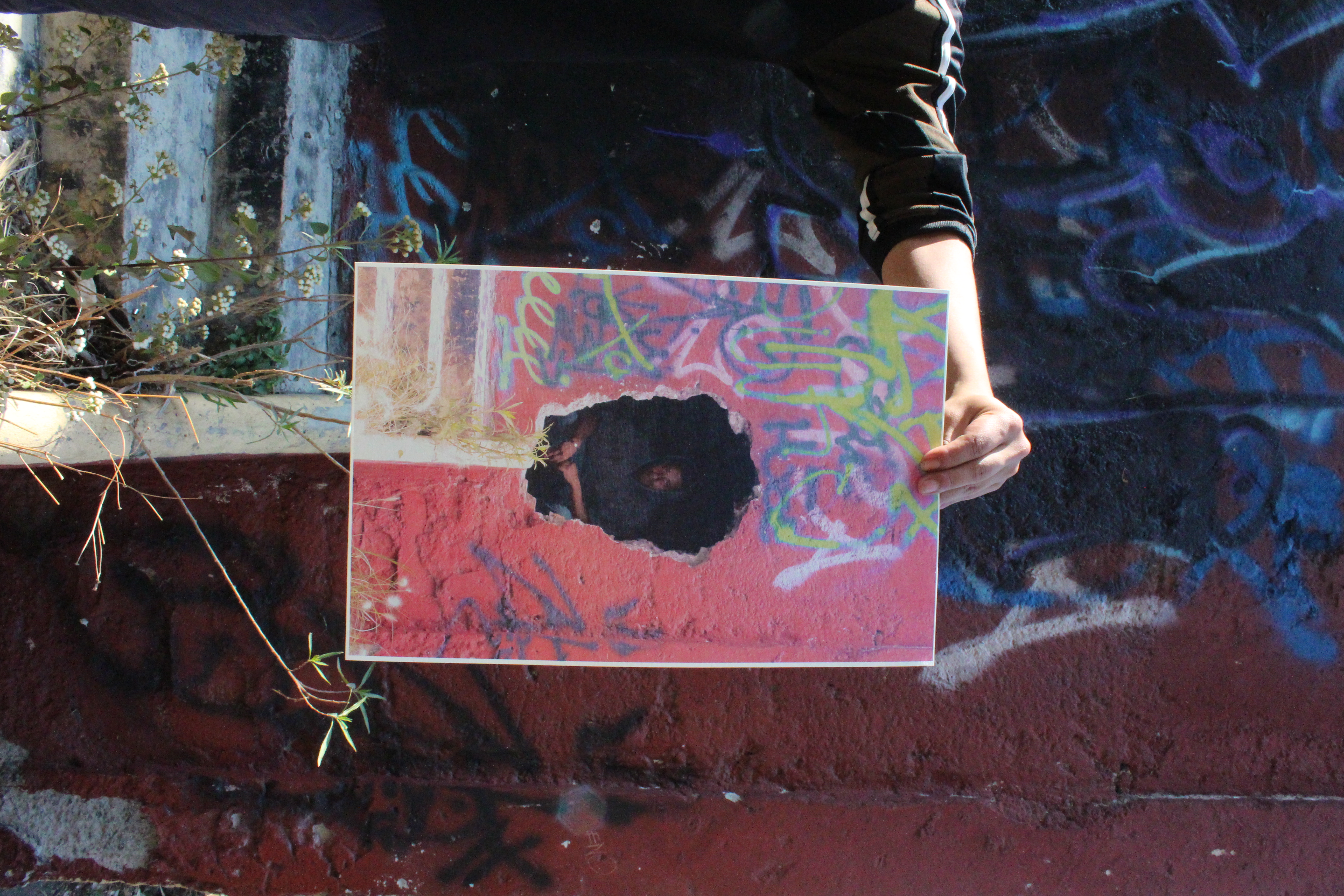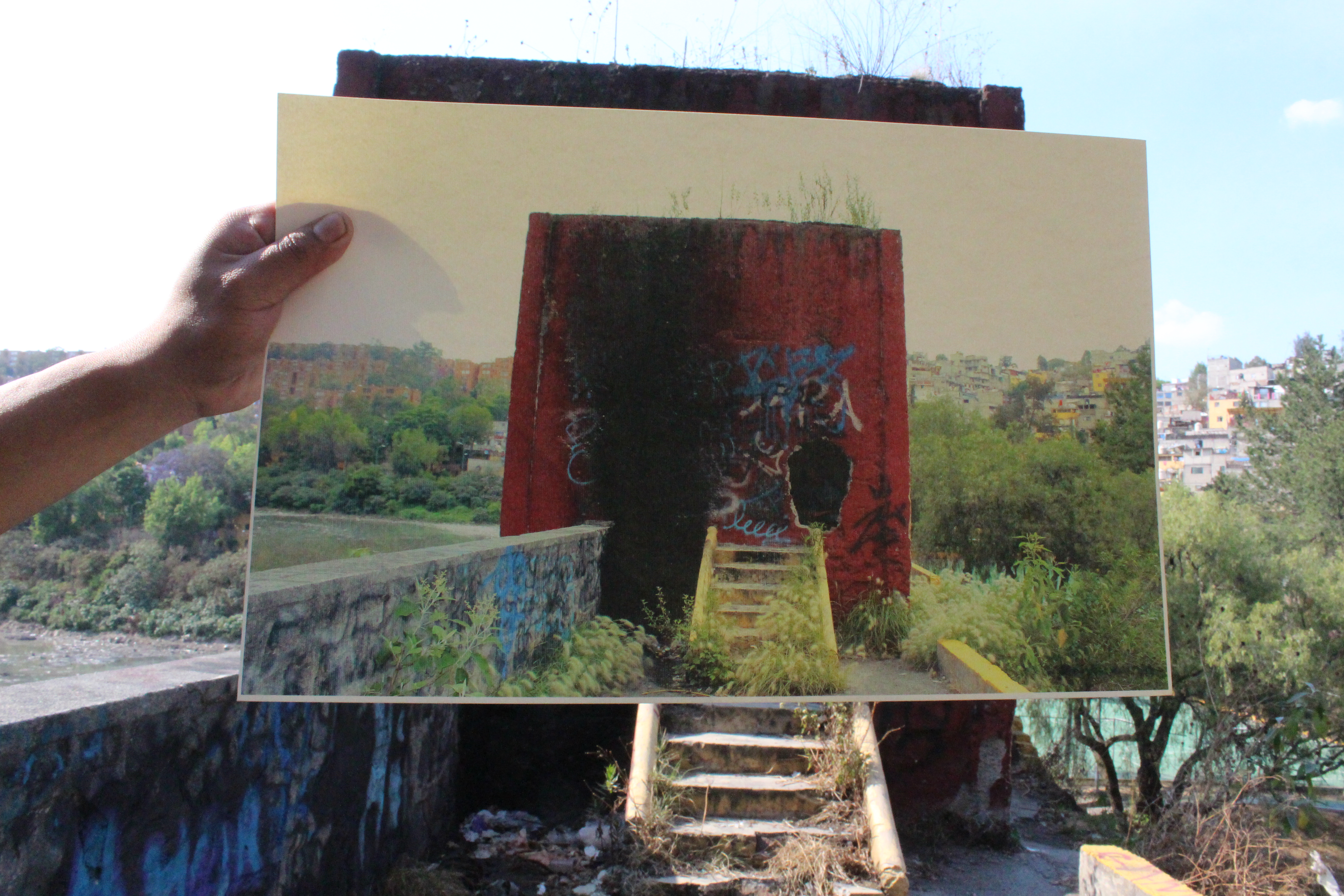 La segunda etapa del proyecto introduce una potente inversión de la lógica representacional. Las fotografías, impresas en la delicadeza táctil del papel algodón, son reinsertadas en los mismos lugares que las originaron. Esta yuxtaposición directa crea una suerte de “multirrealidad”, donde la imagen impresa dialoga, confronta o se fusiona con el entorno presente. El instante capturado se superpone al devenir constante del espacio, generando una tensión entre la memoria visual y la experiencia actual.
