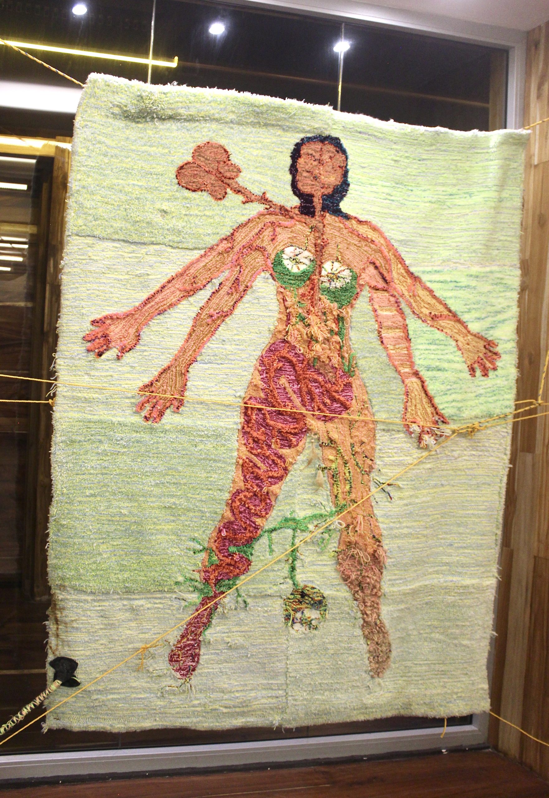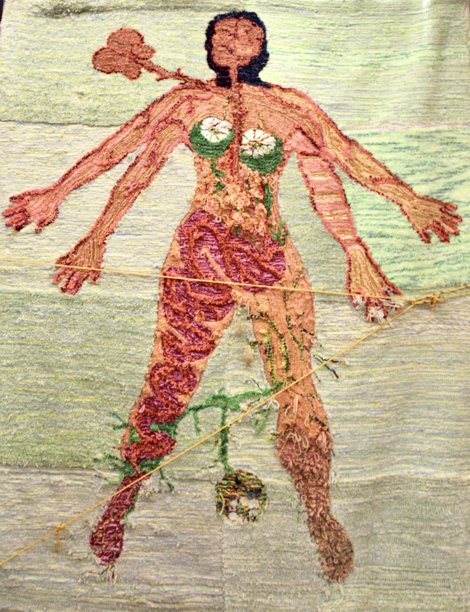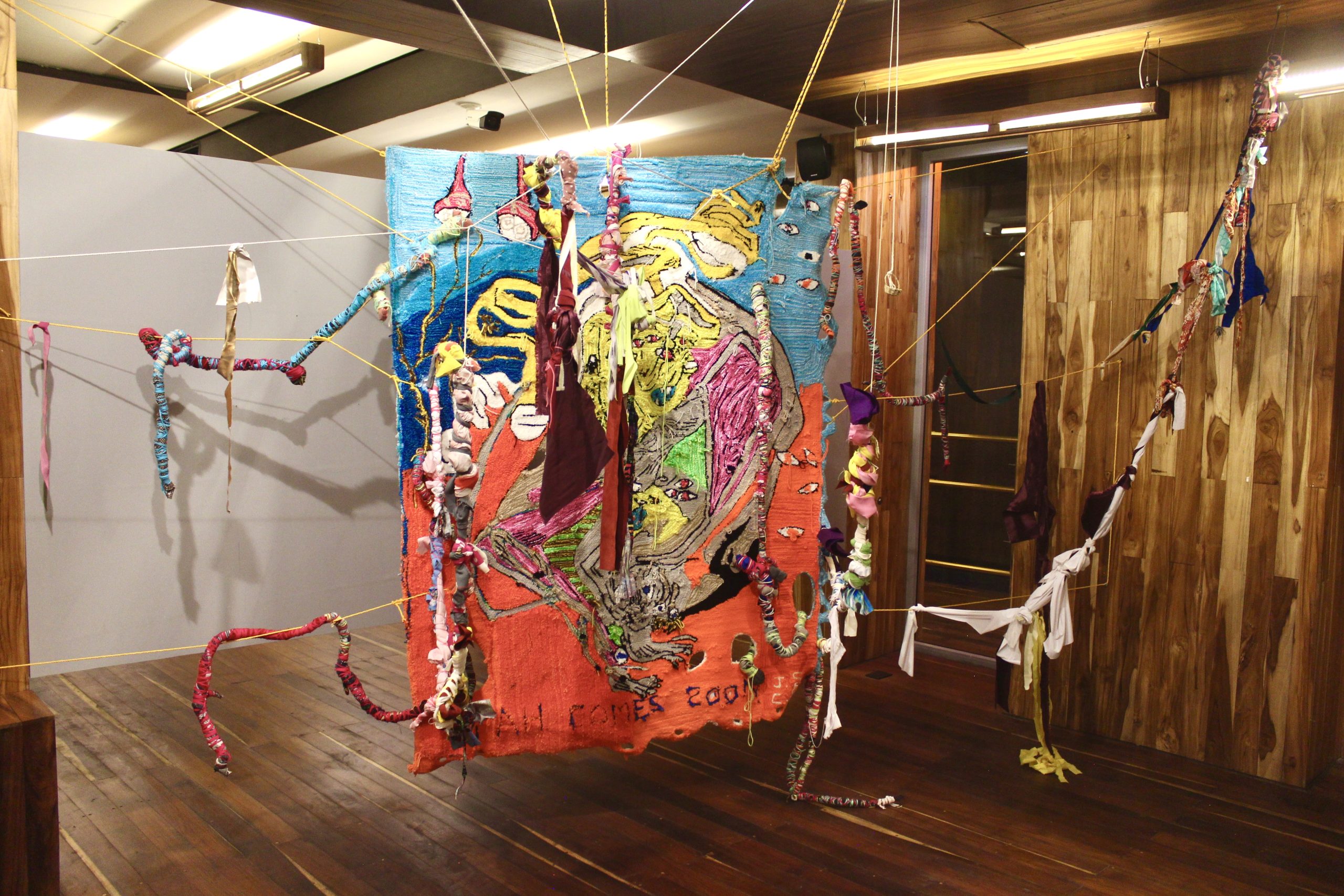 Santos is a Mexican artist who lives and works between Tulum, Quinta Roo and his house-studio located in the foothills of Pueblo Santa Fe in CDMX. In the form of paintings, drawings, sculptures, installations, embroidery or photographs, her work explores the intersections between the human mind and body, the natural environment and industrial matter, as well as the political and aesthetic implications of their social contexts. In his artistic process, Santos draws materials from his urban context, natural environment and/or from his own mind and body. Thus, he examines the expressive possibilities of materials themselves, their vitality and the various ways in which they are physically and discursively transformed. The exhibition highlights new rugs made during the covid-19 pandemic as a collaboration with his brother Jovanny Santos, while weaving family affective ties and exploring the idea of the process of art as individuation (Carl G. Jung), at a general level individuation is understood as the process by which a person becomes an integrated individual, becoming oneself and reaching the ability to be totally autonomous and independent.