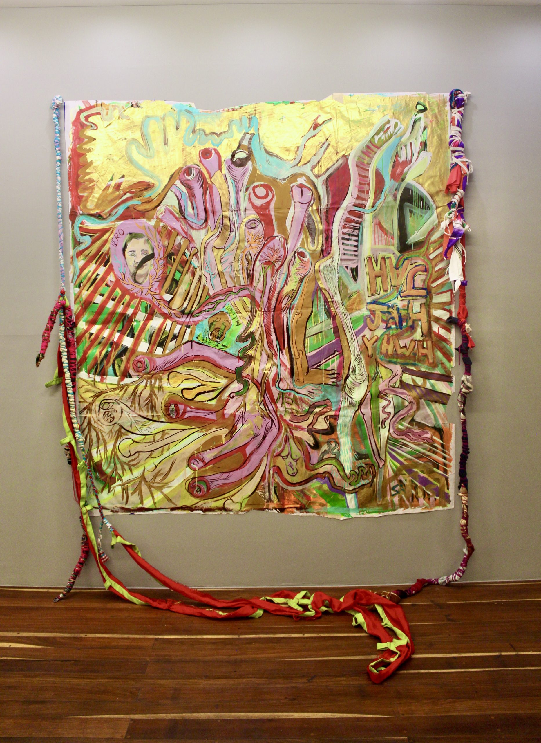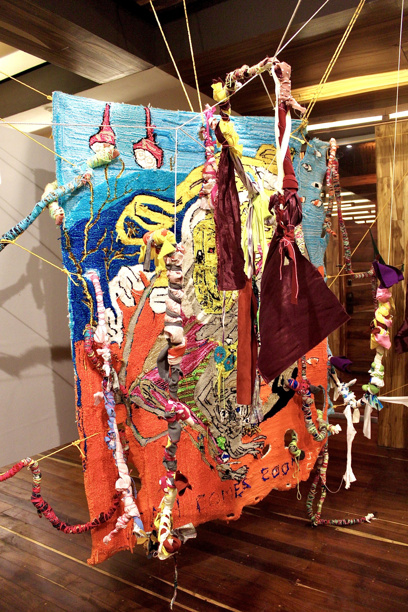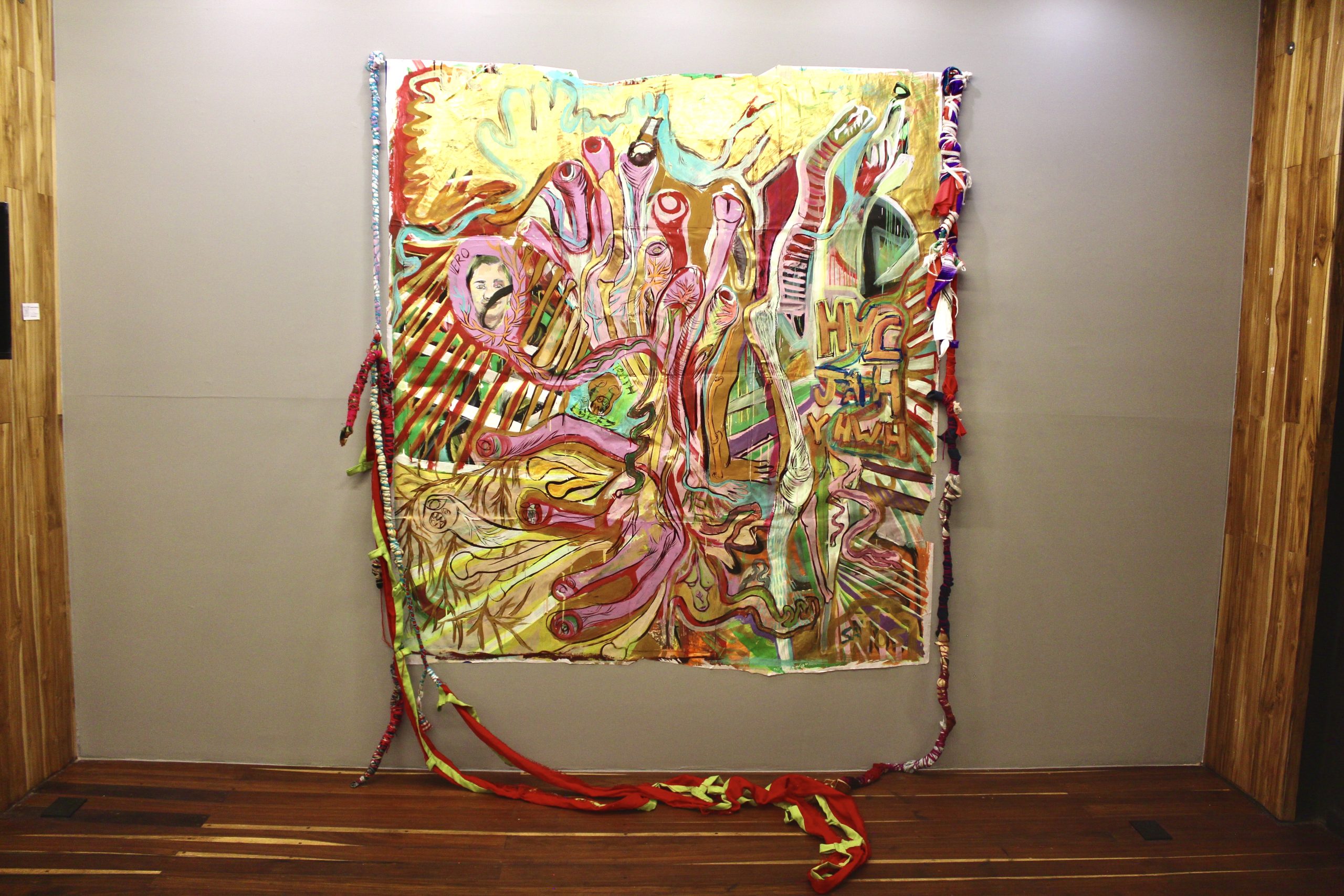 Santos is a Mexican artist who lives and works between Tulum, Quinta Roo and his house-studio located in the foothills of Pueblo Santa Fe in CDMX. In the form of paintings, drawings, sculptures, installations, embroidery or photographs, her work explores the intersections between the human mind and body, the natural environment and industrial matter, as well as the political and aesthetic implications of their social contexts. In his artistic process, Santos draws materials from his urban context, natural environment and/or from his own mind and body. Thus, he examines the expressive possibilities of materials themselves, their vitality and the various ways in which they are physically and discursively transformed. The exhibition highlights new rugs made during the covid-19 pandemic as a collaboration with his brother Jovanny Santos, while weaving family affective ties and exploring the idea of the process of art as individuation (Carl G. Jung), at a general level individuation is understood as the process by which a person becomes an integrated individual, becoming oneself and reaching the ability to be totally autonomous and independent.